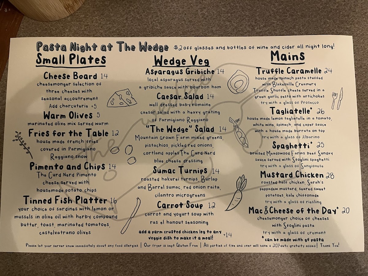 The Wedge Menu has a way of pulling you in from the moment you glance at it, especially if you’re anywhere near 2802 James St in Syracuse. It’s the kind of lineup that makes you pause for a second and think about what you’re really in the mood for, because the options feel both familiar and a little indulgent. As you read through it, you get that sense of everyday comfort food made with the attitude of “let’s make this really good,” which is honestly all anyone wants when grabbing a bite in the neighborhood.